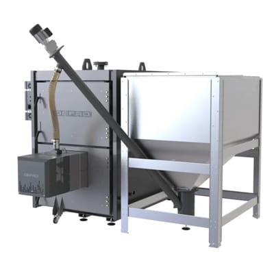 - palenisko wyposażone jest w samoczyszczący palnik na paliwa stałe, gdzie występują wszystkie procesy spalania z udziałem dostarczonego powietrza wentylatorami nadmuchowymi;