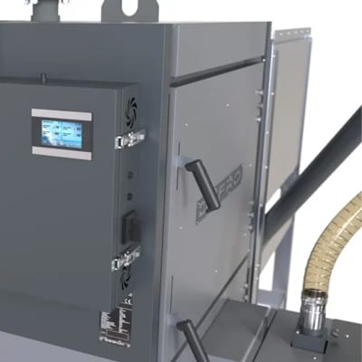 • palenisko wyposażone jest w samoczyszczący palnik na paliwa stałe, gdzie występują wszystkie procesy spalania z udziałem dostarczonego powietrza wentylatorami nadmuchowymi;