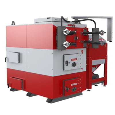 - palenisko wyposażone jest w palnik retortowy na paliwa stałe, gdzie występują wszystkie procesy spalania z udziałem dostarczonego powietrza wentylatorami nadmuchowymi z podziałem na powietrze pierwotne i wtórne,
