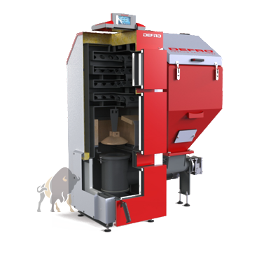 DEFRO KOCIOŁ KOMFORT EKO LUX 12 KW PODAJNIK PRAWY WYLOT SPALIN POD KĄTEM 45° 5 KLASY