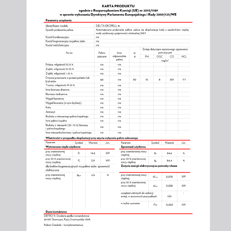 | Symbol producenta | KOMFORT EKO EKOPELL 14 |
