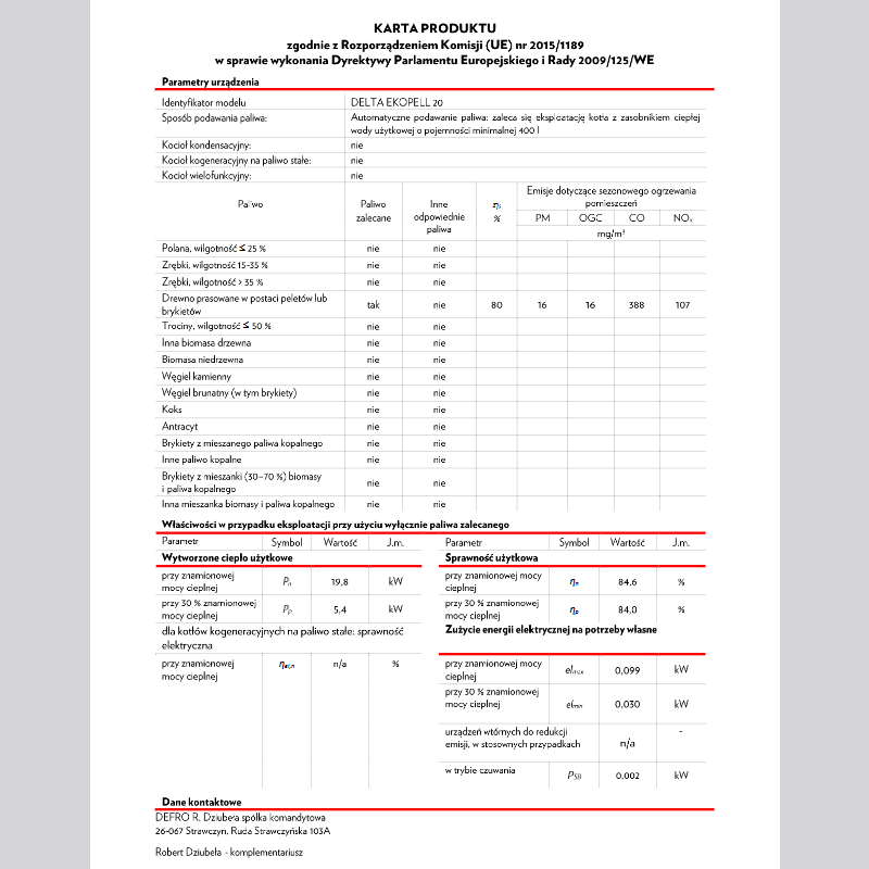 | Symbol producenta | KOMFORT EKO EKOPELL 20 |