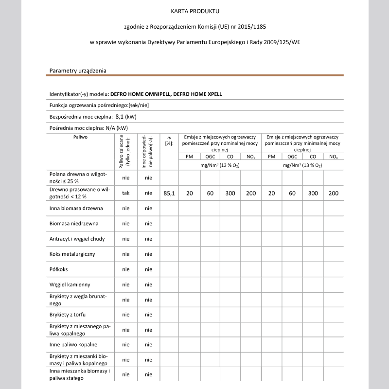 | Doprowadzenie powietrza do spalania bezpośrednio z zewnątrz | tak |