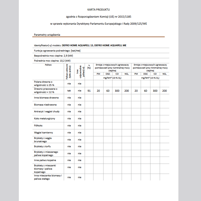 | Rodzaj paliwa | pellet 6 mm |