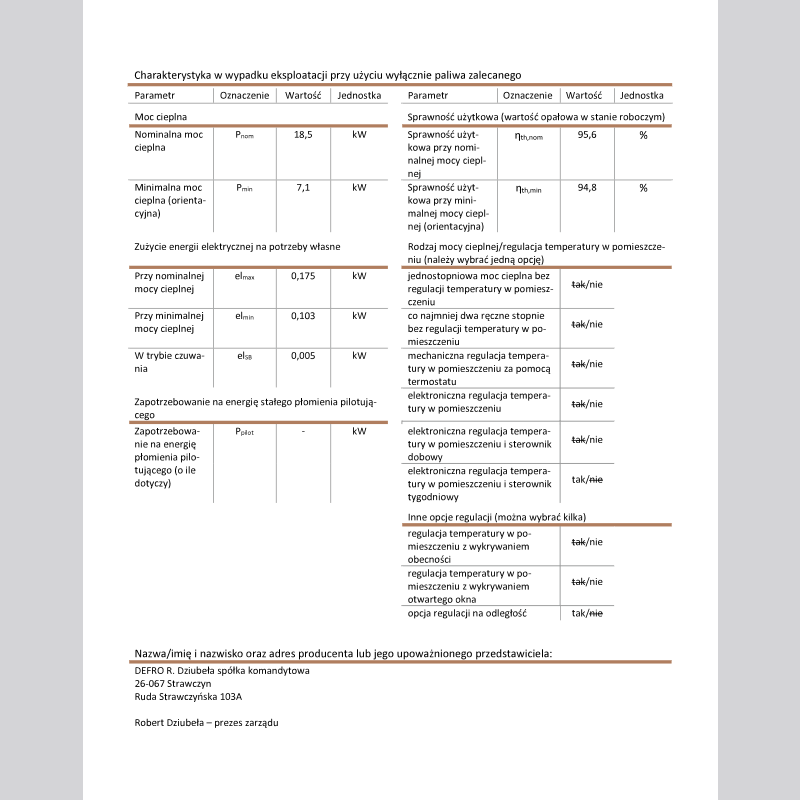 Paliwo | – | pellet drzewny o średnicy 6 mm | |||