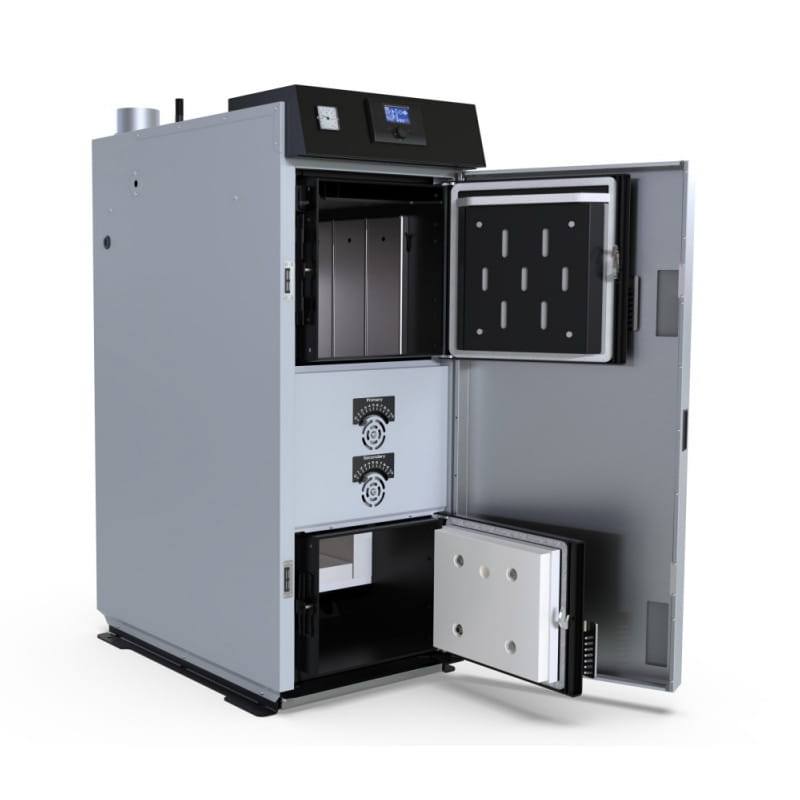 Kocioł HG wykorzystuje technikę dwustopniowego spalania – zgazowania paliwa i następującej po nim pirolizie, czyli spaleniu powstałych gazów. Podstawowym paliwem jest drewno opałowe. Wymiennik kotła wykonany jest z wysokiej jakości atestowanej blachy kotłowej o grubości 6-8 mm w postaci dwóch umieszczonych nad sobą komór – górnej, która służy jako zasobnik opału i dolnej – łączącej funkcję komory spalania i popielnika. Pomiędzy komorami umieszczony jest ruszt, który umożliwia doskonałe zgazowanie drewna i łatwe usuwanie popiołu. Proces zgazowania drewna pozwala w pełni wykorzystać energię zgromadzoną w paliwie oraz spełnić restrykcyjne parametry emisyjne. Proces spalania jest regulowany innowacyjnym sterownikiem z dotykowym wyświetlaczem. Kocioł HG posiada wbudowany wentylator wyciągowy, który zabezpiecza przed cofaniem się dymu do kotłowni. Kocioł można montować w systemie zamkniętym.