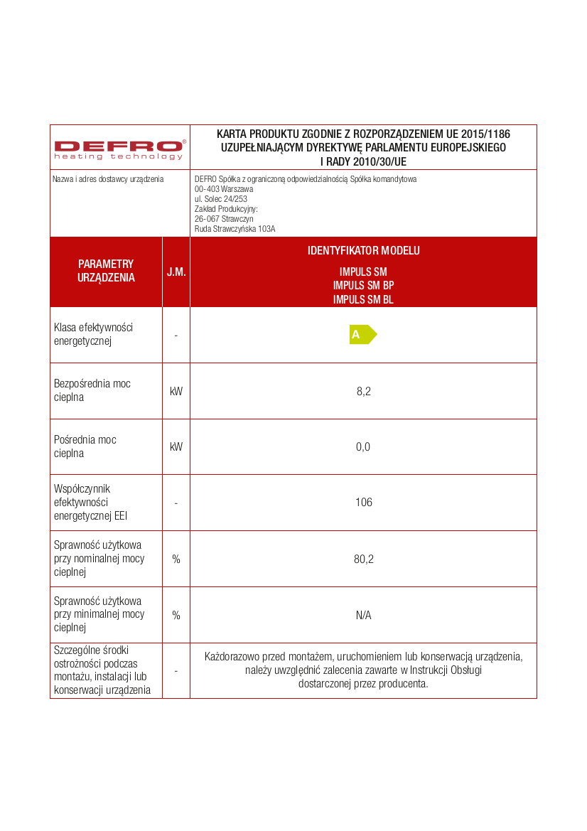 | Kod producenta | IMPULS SM BL |