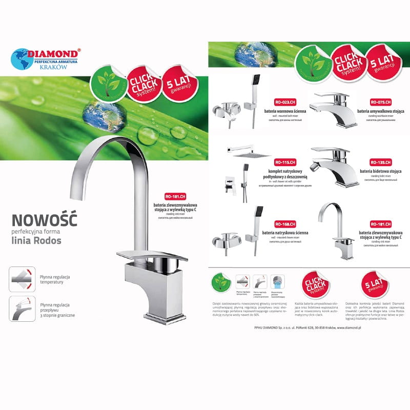 Nowoczesna linia funkcjonalnych baterii kuchennych iłazienkowych należąca do klasy PREMIUM. Wykonana jest zlitego mosiądzu zpowłoką chromową. Wyposażona wregulator ceramiczny iperlator zsystemem oszczędzania wody. Została przygotowana dla wymagającego klienta, do nowoczesnych wnętrz ijest znana zartystycznej formy.