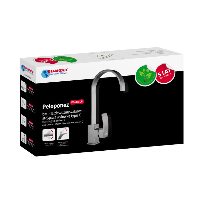 Nowoczesna linia funkcjonalnych baterii kuchennych iłazienkowych należąca do klasy PREMIUM. Wykonana jest zlitego mosiądzu zpowłoką chromową. Wyposażona wregulator ceramiczny iperlator zsystemem oszczędzania wody. Została przygotowana dla wymagającego klienta, do nowoczesnych wnętrz. Perfekcja wykonania zapewnia trwałość ijakość na długie lata. Linia PELOPONEZ oferuje praktyczne funkcje oraz łatwe wpielęgnacji kształty ipowierzchnie.