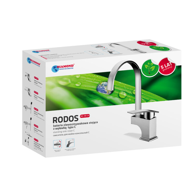 Perfekcja wykonania zapewnia trwałość ijakość na długie lata. Linia Rodos oferuje praktyczne funkcje oraz łatwe wpielęgnacji kształty ipowierzchnie. Seria RODOS dodatkowo oferuje baterie natryskową podtynkową zdużą deszczownicą.