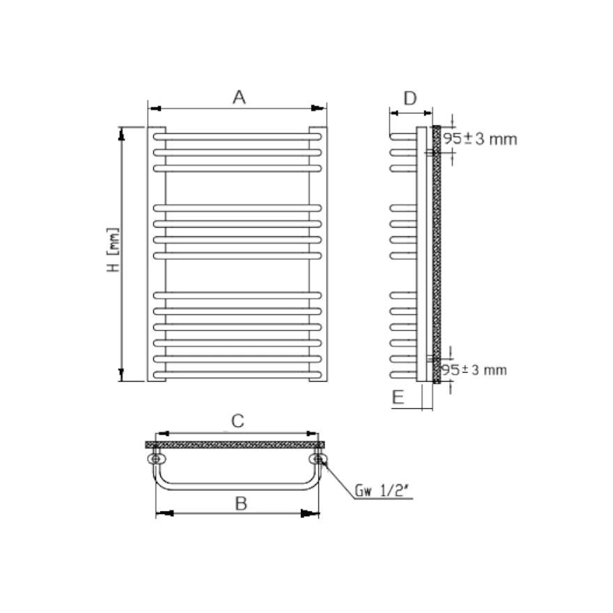 | KOD GRZEJNIKA | H[mm] | A[mm] | B[mm] | C[mm] | D [mm] | E [mm] |