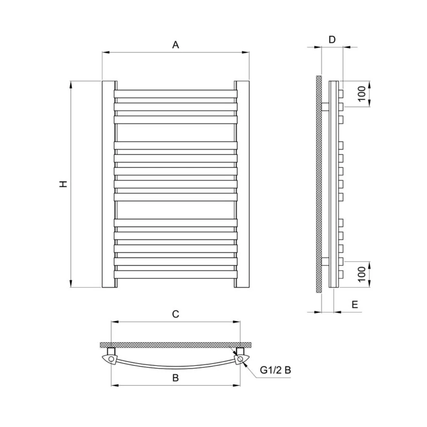 Grzejniki łazienkowe TYP-GR3 to nie tylko urządzenie grzewcze, ale przede wszystkim prawdziwa sztuka onowoczesnej iwyrafinowanej linii prezentująca się wytwornie wkażdej łazience. Przeznaczone są do instalacji C.O. domowej sieci grzewczej. Posiadają zasilanie dolne. Zbudowane są zkolektora oprofilu trójkątnym owymiarach: 56,4 x 34,6 mm. Szczeble to profil poziomy owymiarach: 30 x 10 mm.