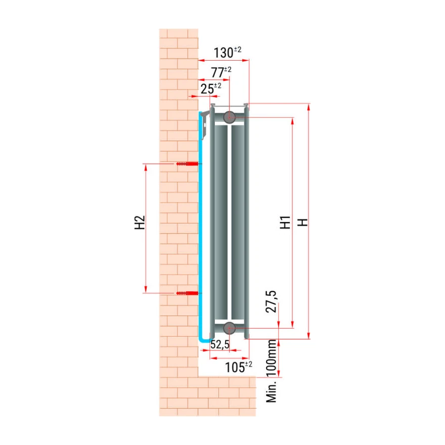 H4– odległość od krawędzi zawieszki do krawędzi grzejnika (wysokość zawieszki 30mm)