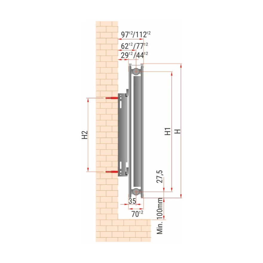 H3 – odległość pomiędzy zawieszkami grzejnika