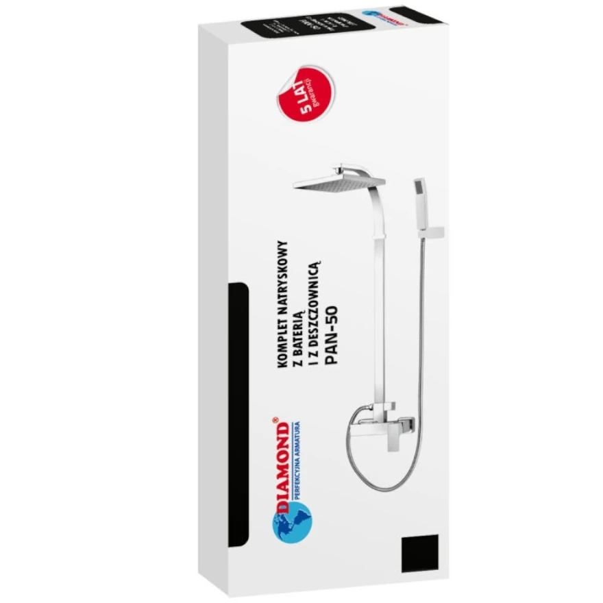 DIAMOND KOMPLET NATRYSKOWY Z BATERIĄ JEDNOUCHWYTOWĄ, PAN-50
