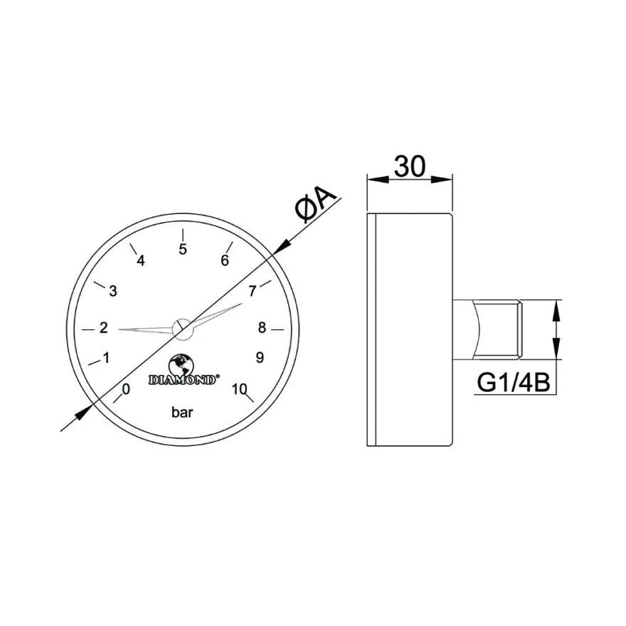DIAMOND MANOMETR TYP: 418, 20-B-50-G1/4B-2,5-0/4