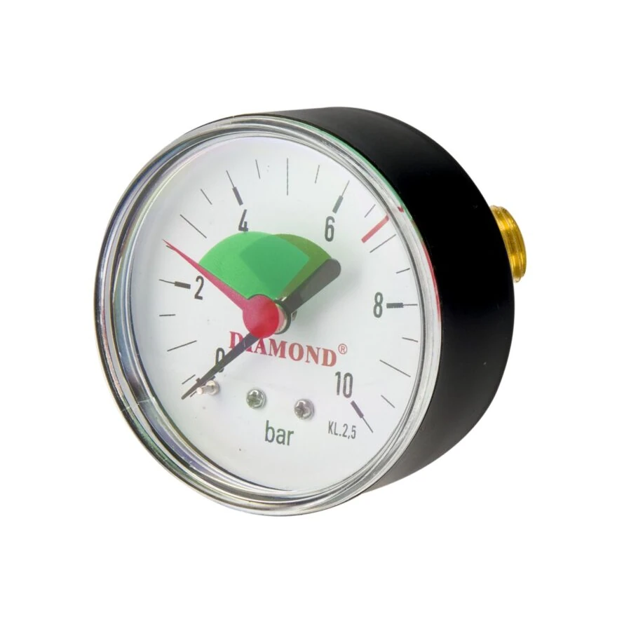 Ciśnieniomierze oparte są na sprężynie rurkowej Bourdona, aich obudowy wykonane są zwysokiej jakości tworzyw sztucznych. Wukładach zamkniętych pokazują nam jakie ciśnienie występuje winstalacji. Wzależności od potrzeb iwymogów urządzenia, ciśnieniomierze są produkowane ztarczami różnej wielkości. Posiadają one zakresy pomiarowe od 0 do 4, 6 lub 10 bar, aprzyłącza manometrów są umieszczone wosi (ztyłu tarczy)