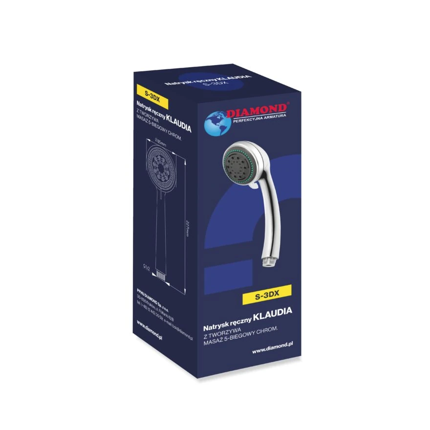 Natryski ręczne DIAMOND wykonane z tworzywa z powłoka chromową posiadają łatwe w pielęgnacji kształty i powierzchnie. Dzięki zastosowaniu kilku biegowego przełączenia uzyskujemy możliwość dostosowania mocy strumienia od delikatnego do funkcji mocnego masażu. Występują w różnych kształtach i rozmiarach , przeznaczone dla baterii wannowych i natryskowych oraz kompletów natryskowych.