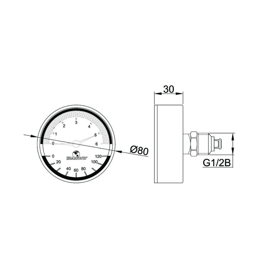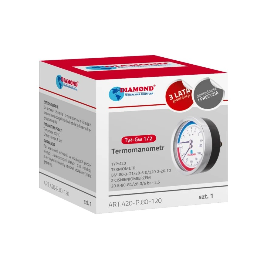 DIAMOND TERMOMANOMETR-TYP:420 TERMOMETR BM-80-3-G1/2B-6-0/120-2-26-10 +CIŚNIENIOMIERZ 20-B-80-G1/2B-2,5 – 0/6bar, TYŁ