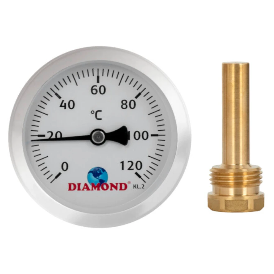 Bimetaliczne termometry DIAMOND przeznaczone są do pomiarów ikontroli temperatury cieczy, par igazów wurządzeniach grzewczych, wymiennikach ciepła, kotłach irurociągach.