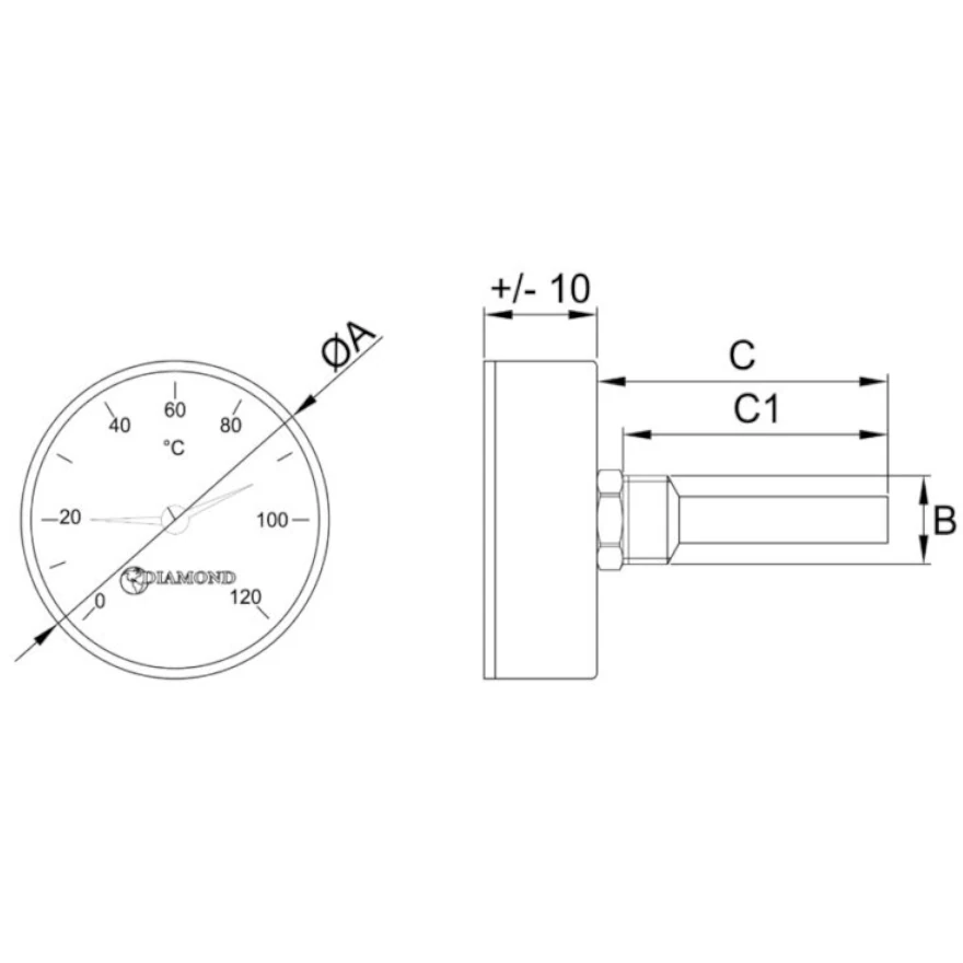 DIAMOND TERMOMETR TYP 419 TYŁ, BM-40-3-G1/4B-6-0/120-2-28-11