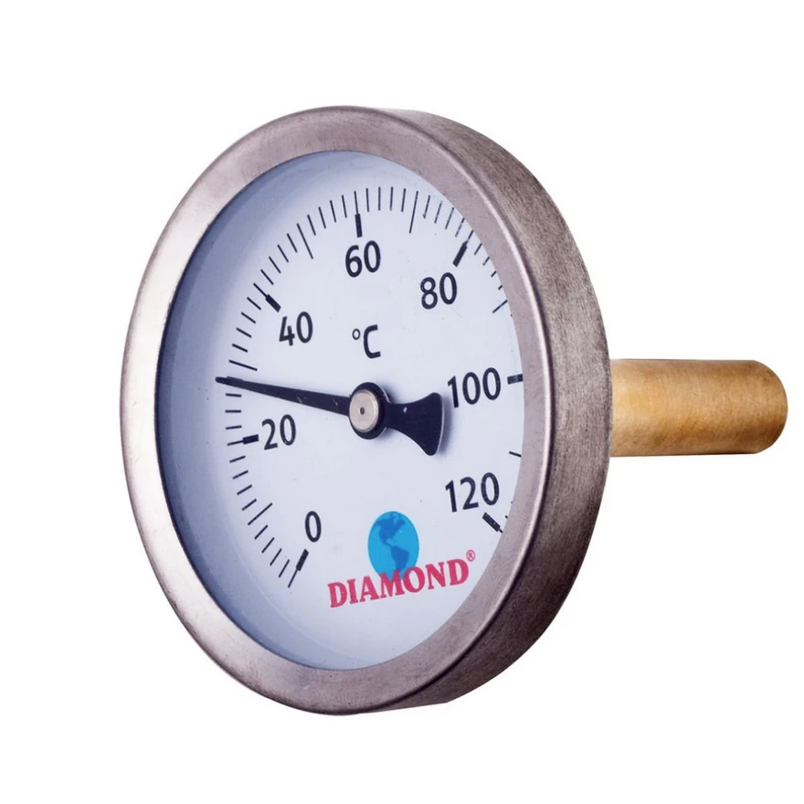 Bimetaliczne termometry DIAMOND przeznaczone są do pomiarów ikontroli temperatury cieczy, par igazów wurządzeniach grzewczych, wymiennikach ciepła, kotłach irurociągach.