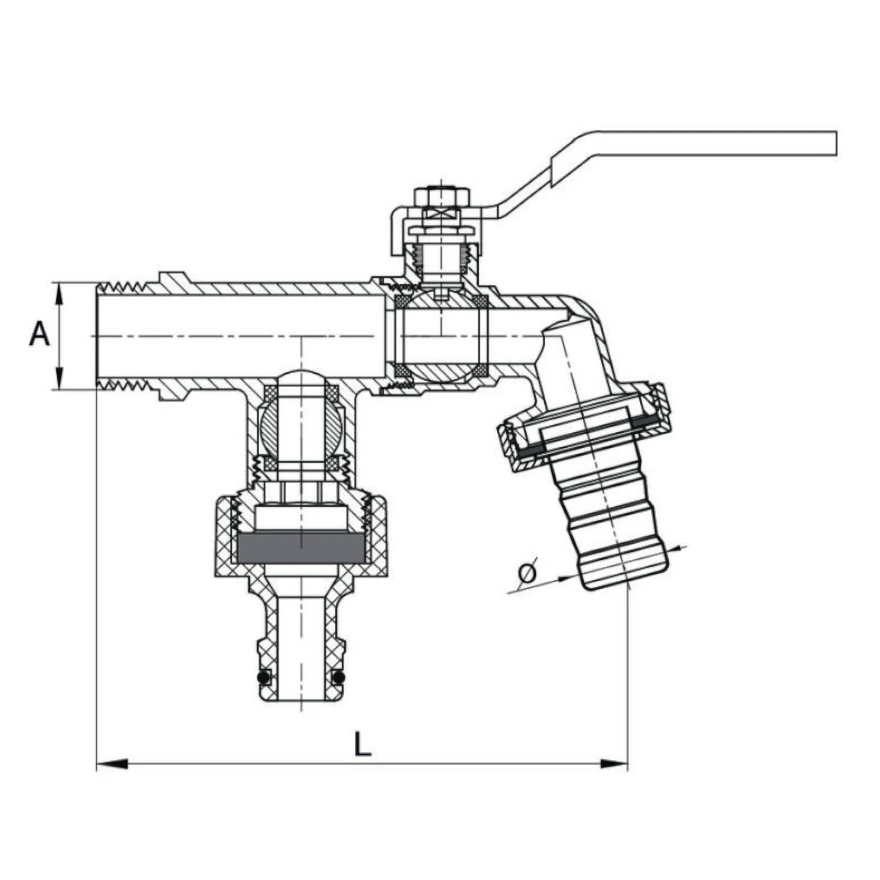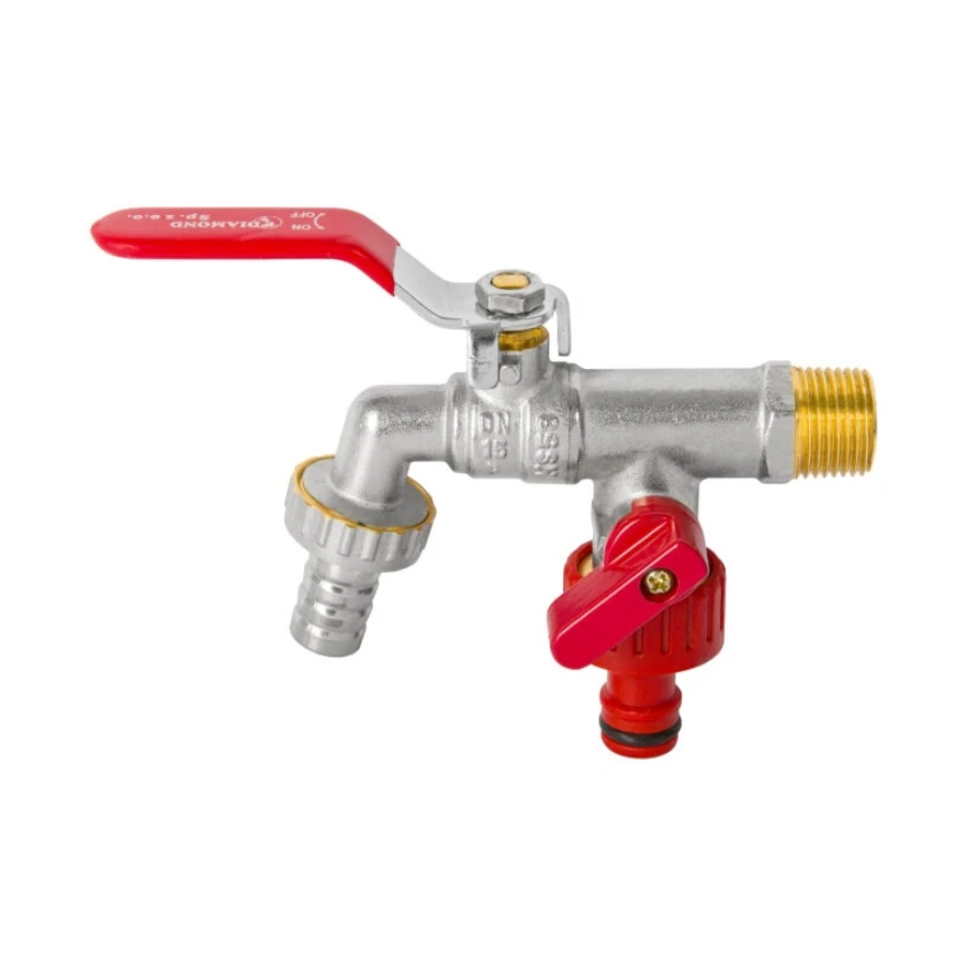 DIAMOND ZAWÓR KULOWY Z RĄCZKĄ – KRAN CZERPALNY PODWÓJNY Z DŁAWIKIEM, DN15 1/2″ PN10