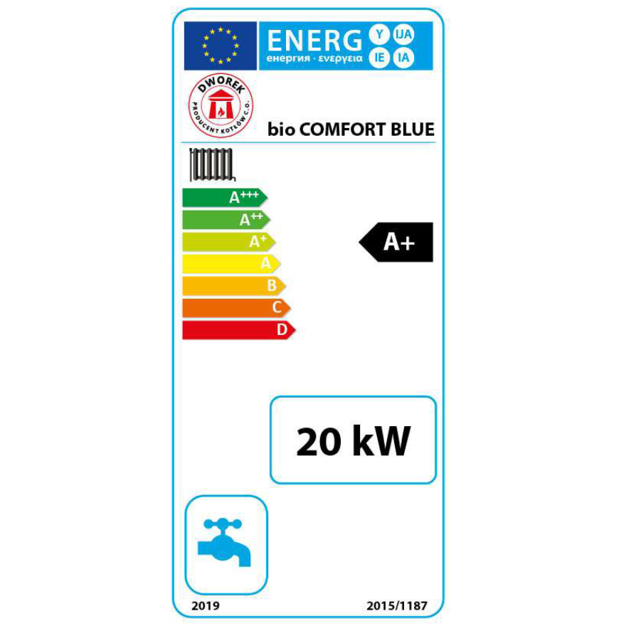 Kotły grzewcze typu BIO COMFORT BLUE o mocach 10 – 25 kW są kotłami C.O. przeznaczonymi do spalania biomasy w postaci sprasowanego granulatu drzewnego – peletów. Trzon kotła wykonano jako konstrukcję spawaną z blachy kotłowej P265GH o grubości 6 mm. Wymiennik ciepła to prostopadłościan o podwójnych ścianach, podzielony przegrodami wodnymi. Kocioł wyposażony jest w sterownik przystosowany do obsługi 4 pomp: C.O., C.W.U., cyrkulacyjnej i podłogowej.