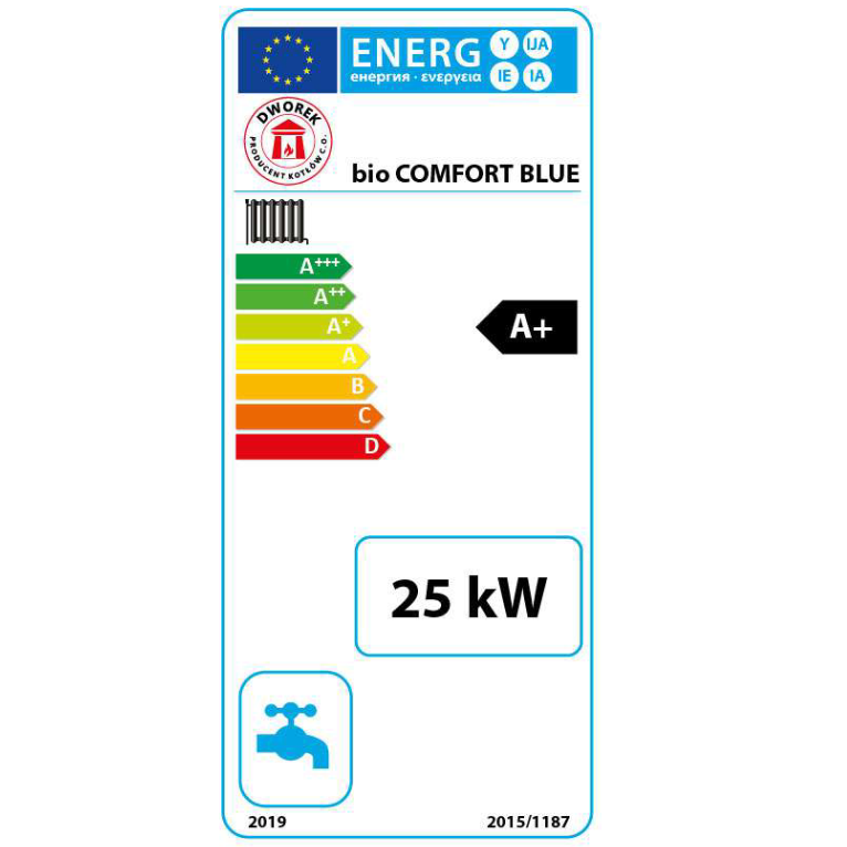 Kotły grzewcze typu BIO COMFORT BLUE o mocach 10 – 25 kW są kotłami C.O. przeznaczonymi do spalania biomasy w postaci sprasowanego granulatu drzewnego – peletów. Trzon kotła wykonano jako konstrukcję spawaną z blachy kotłowej P265GH o grubości 6 mm. Wymiennik ciepła to prostopadłościan o podwójnych ścianach, podzielony przegrodami wodnymi. Kocioł wyposażony jest w sterownik przystosowany do obsługi 4 pomp: C.O., C.W.U., cyrkulacyjnej i podłogowej.