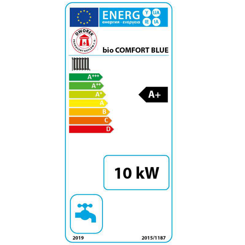 Kotły grzewcze typu BIO COMFORT BLUE o mocach 10 – 25 kW są kotłami C.O. przeznaczonymi do spalania biomasy w postaci sprasowanego granulatu drzewnego – peletów. Trzon kotła wykonano jako konstrukcję spawaną z blachy kotłowej P265GH o grubości 6 mm. Wymiennik ciepła to prostopadłościan o podwójnych ścianach, podzielony przegrodami wodnymi. Kocioł wyposażony jest w sterownik przystosowany do obsługi 4 pomp: C.O., C.W.U., cyrkulacyjnej i podłogowej.