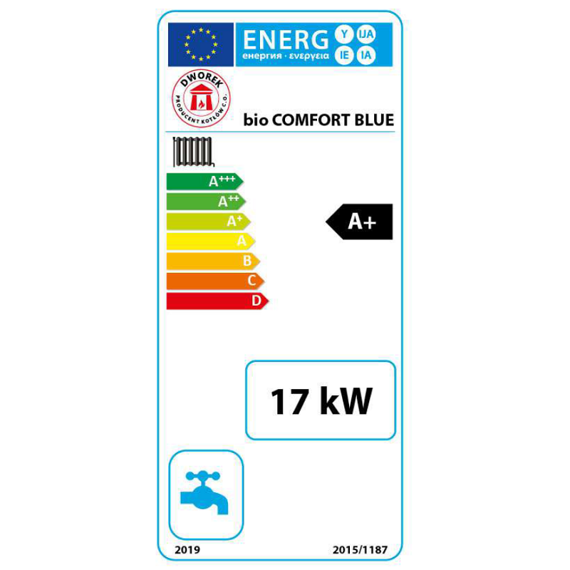 Kotły grzewcze typu BIO COMFORT BLUE o mocach 10 – 25 kW są kotłami C.O. przeznaczonymi do spalania biomasy w postaci sprasowanego granulatu drzewnego – peletów. Trzon kotła wykonano jako konstrukcję spawaną z blachy kotłowej P265GH o grubości 6 mm. Wymiennik ciepła to prostopadłościan o podwójnych ścianach, podzielony przegrodami wodnymi. Kocioł wyposażony jest w sterownik przystosowany do obsługi 4 pomp: C.O., C.W.U., cyrkulacyjnej i podłogowej.