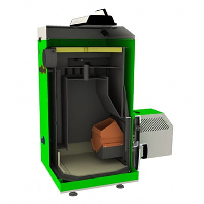 Kocioł c.o. na pelety o mocy 18 lub 35 kW przeznaczony jest do podłączenia do instalacji centralnego ogrzewania systemu otwartego mieszkań, domów mieszkalnych, warsztatów itp. posiadających zabezpieczenia zgodne z wymaganiami normy PN-B-02413.
