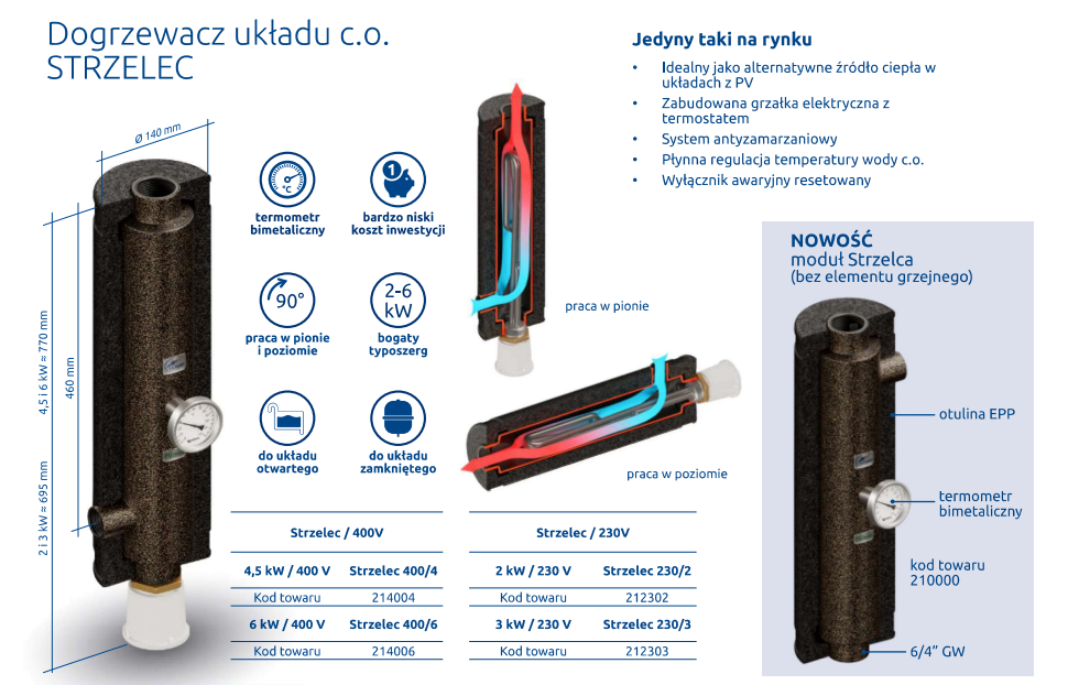 STRZELEC– PRZELOTOWY DOGRZEWACZ DO UKŁADU C.O