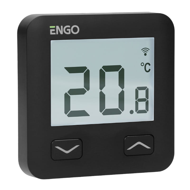 ENGO PODTYNKOWY, DWUSTANOWY, PRZEWODOWY, CZARNY REGULATOR TEMPERATURY Z WI-FI
