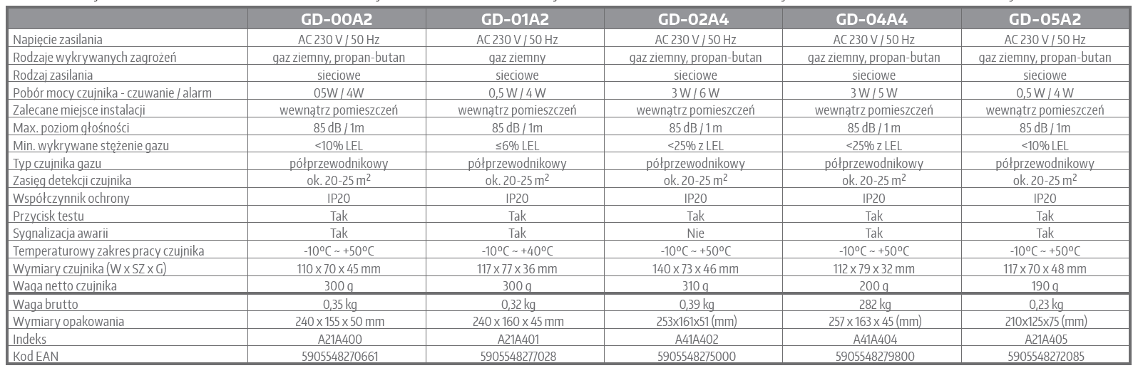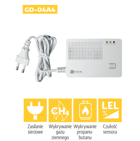 EURA-TECH CZUJNIK GAZU „EL HOME” GD-04A4 (metan; propan – butan; zasilanie 230 V; 1,5 m przewód)