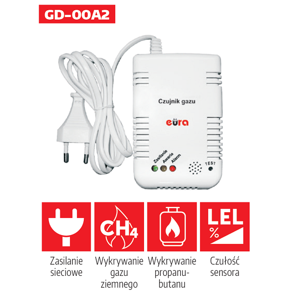 EURA-TECH CZUJNIK GAZU „EURA” GD-00A2 (gaz ziemny; propan – butan; zasilanie 230 V)