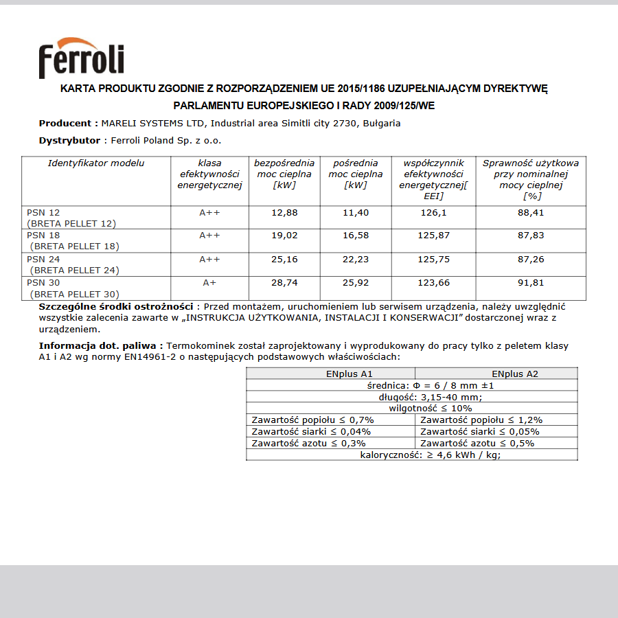 FERROLI TERMOKOMINEK NA PELET BRETA 12KW