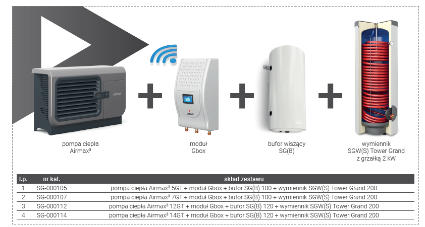 GALMET AIRMAX3 7GT R290 1FZ 7KW ZESTAW 4W1 SG-000107 (pompa ciepła Airmax3 7GT + moduł Gbox + bufor SG(B) 100 + wymiennik SGW(S) Tower Grand 200)