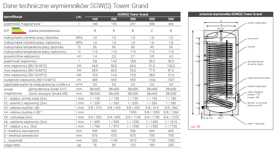 Do wymienników SGW(S) Tower Grand zalecamy stosowanie bezobsługowej aktywnej anody