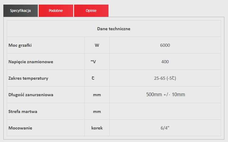 | Dedykowany do | Wymienniki z mufą 6/4" pod komplet elektryczny GE |