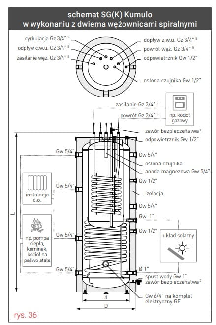 Schemat zbiornika kombinowanego z dwoma wężownicami