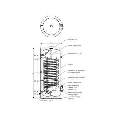Schemat wymiennika c.w.u. do pomp ciepła Maxi pojemność: 250 – 500 litrów