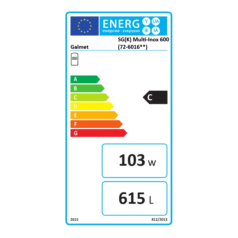 | Klasa efektywności energetycznej podgrzewania wody | C |
