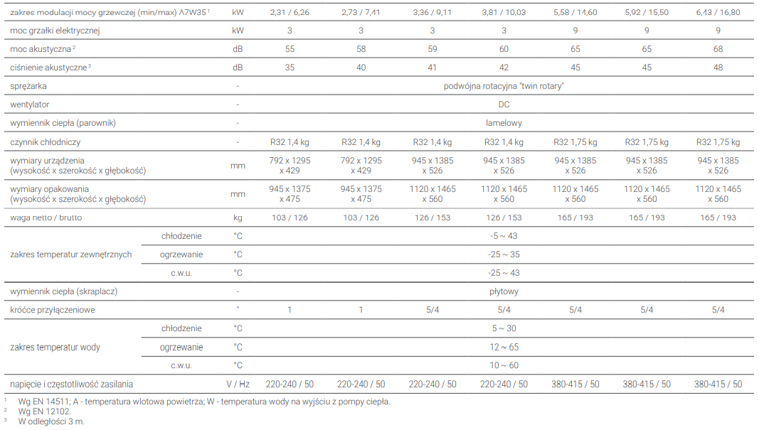 - Modulowana moc grzewcza – podwójna rotacyjna sprężarka inwerterowa (twin rotary).