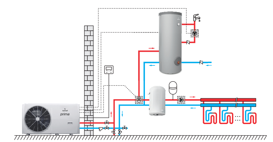 - System 4w1: pompa ciepła + wymiennik c.w.u. + bufor c.o. + zawór trójdrogowy.