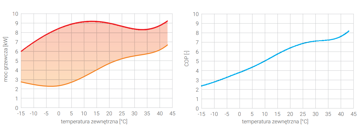 - Temperatura na wyjściu z pompy ciepła do 65°C.
