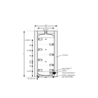 Konstrukcja zbiornika buforowego SG(B) zapewniamaksymalne wykorzystanie ciepła. Rozmieszczone na całej wysokości przyłącza hydrauliczne pozwalają zasilić instalację grzewczą różnymi temperaturami czynnika grzewczego. Zbiornik buforowy wykonany został zwytrzymałej, czarnej stali węglowej. Umożliwia to pracę bufora na ciśnieniu max. do 0.3MPa (0,6MPa, w przypadku wykonań specjalnych).