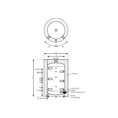 - Zbiorniki buforowe nieemaliowane z jedną wężownicą stalową do podłączenia dodatkowego źródła ciepła.