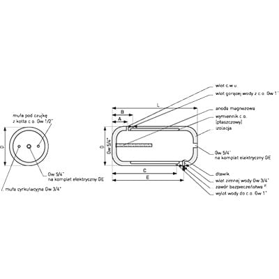 Źródłem ciepła w wymienniku może być dowolny kocioł c.o., opcjonalnie także grzałka elektryczna. Komplet elektryczny GE z grzałką i sterownikiem zapewnia komfort użytkowania ciepłej wody niezależnie od pracy kotła c.o. Instalowany jest w dennicy, co pozwala na łatwy montaż w dowolnym momencie.