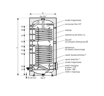 | Materiał płaszcza zbiornika | stal malowana proszkowo - emalia ceramiczna nakładana metodą na mokro - EXTRA GLASS® |